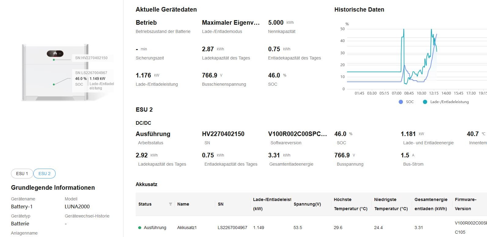 HUAWEI LUNA2000: Nach Austausch keine SOC- und (Ent-)Ladedaten