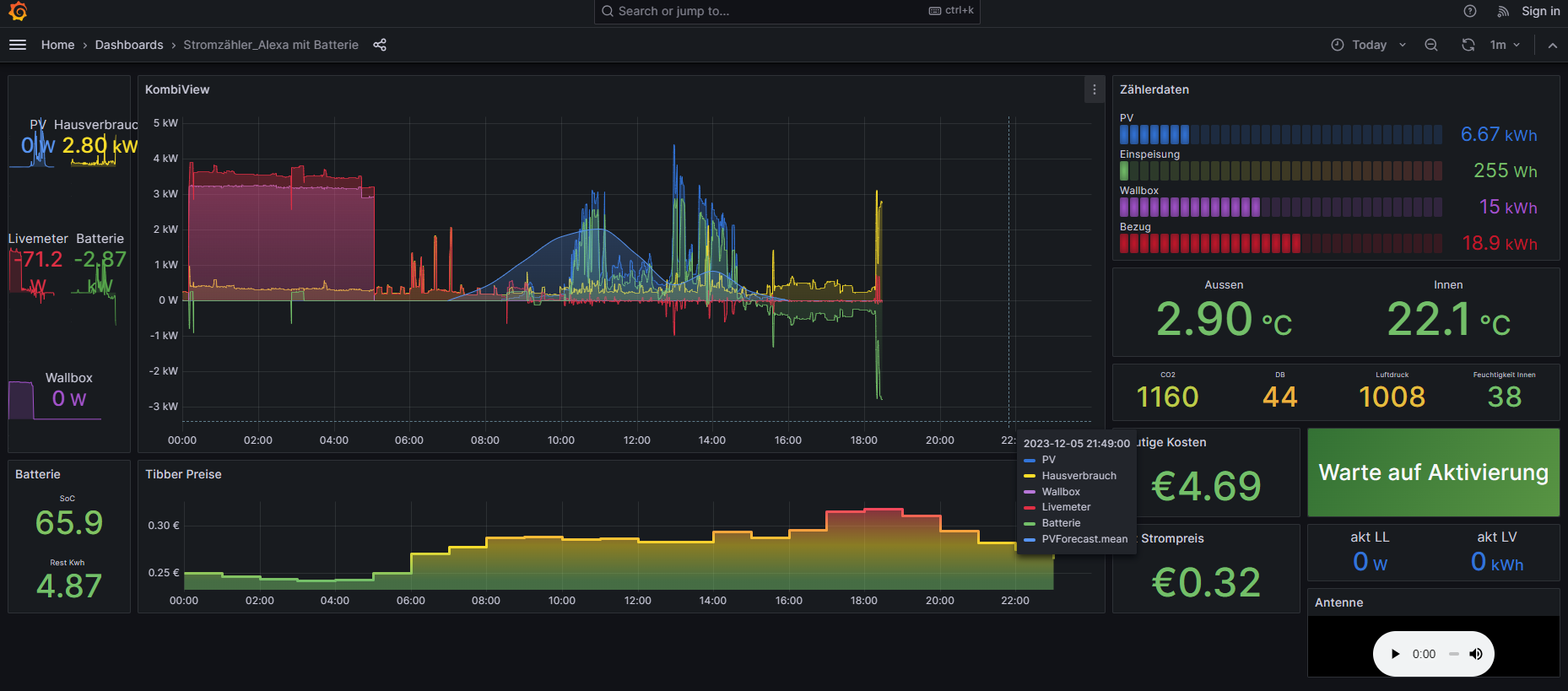 Die Grafana Screen zeigt mir auch schon den aktuellen Tibber Preis an, da Grafana den direkt sogar auslesen kann.