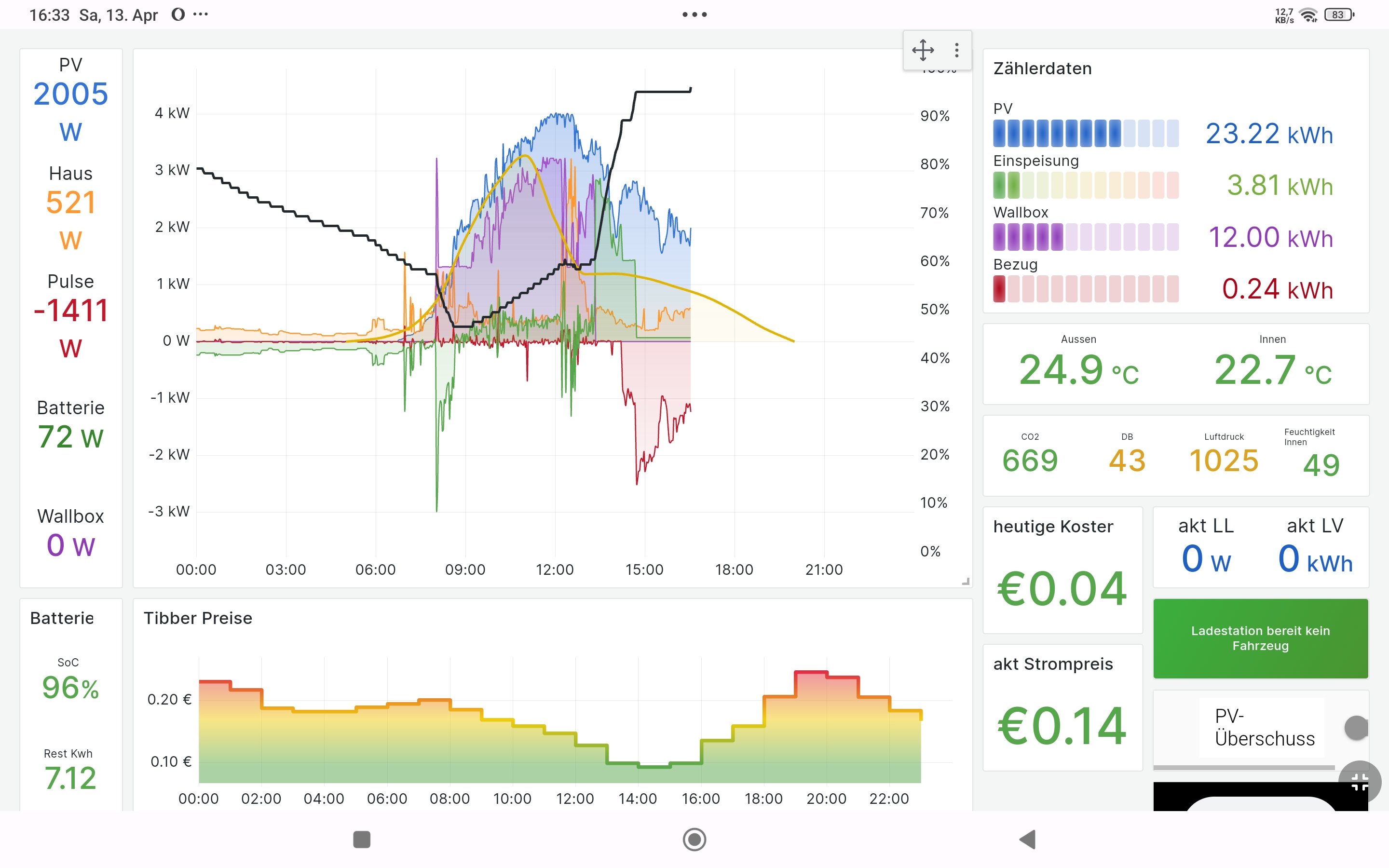 Solaranzeige mit SMA, GoeCharger und Tibber