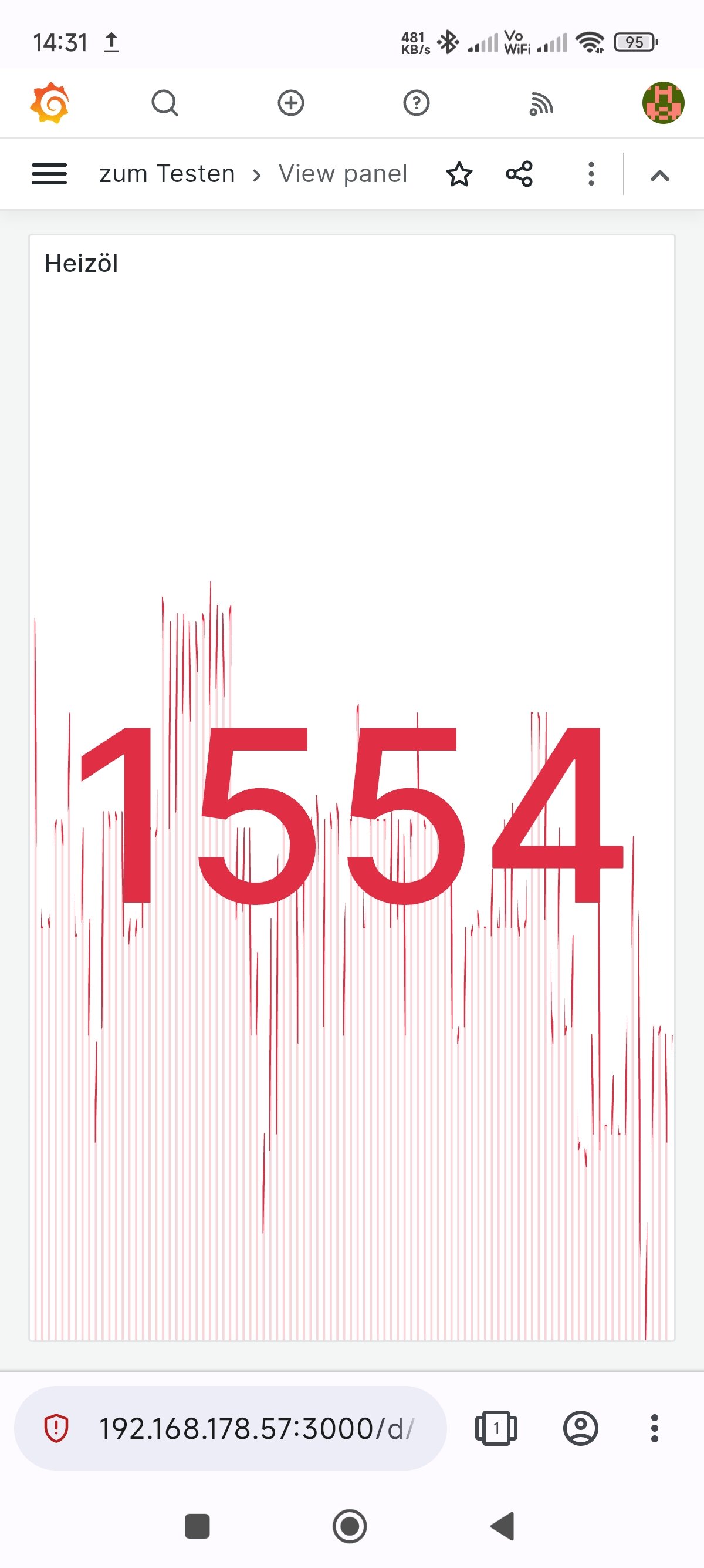 Der errechnete Füllstand schwankt um 10l immer wieder, je nach Temperatur und ob gerade der Brenner läuft, man sieht aber eine gute Tendenz..