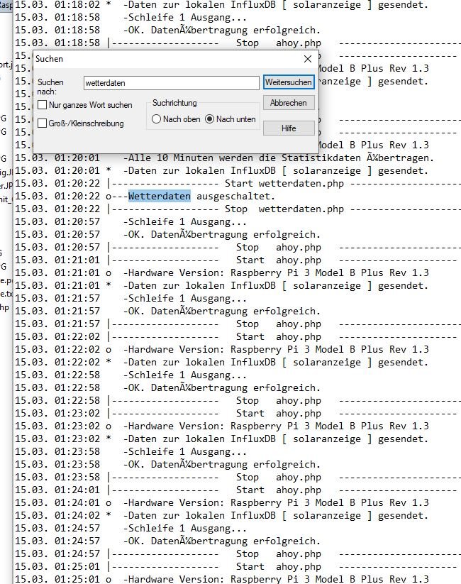 Schau mal in die /var/www/log/solaranzeige.log Datei. Da müsstest du folgende Einträge sehen:
