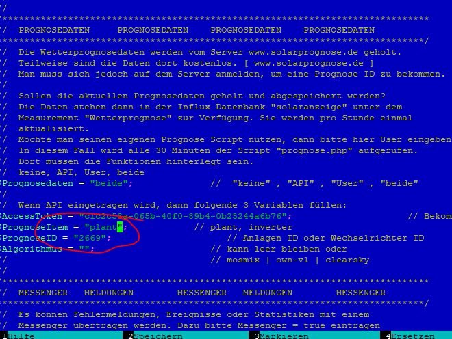Ich habe jetzt mal umgestellt von Inverter auf plant und auch die erste Nummer (2669) eingegeben, vorher bei inverter war es die Anlagen Nummer (2644)Bogeyof hat geschrieben: ↑Di 28. Mär 2023, 07:26Hast Du denn die Einträge für Wetterdaten auch hinterlegt und aktiviert? Die Prognose wird von wetterdaten.php ausgeführt und wenn keine Wetterdaten gewünscht sind wird die Prognose gar nicht ausgeführt...