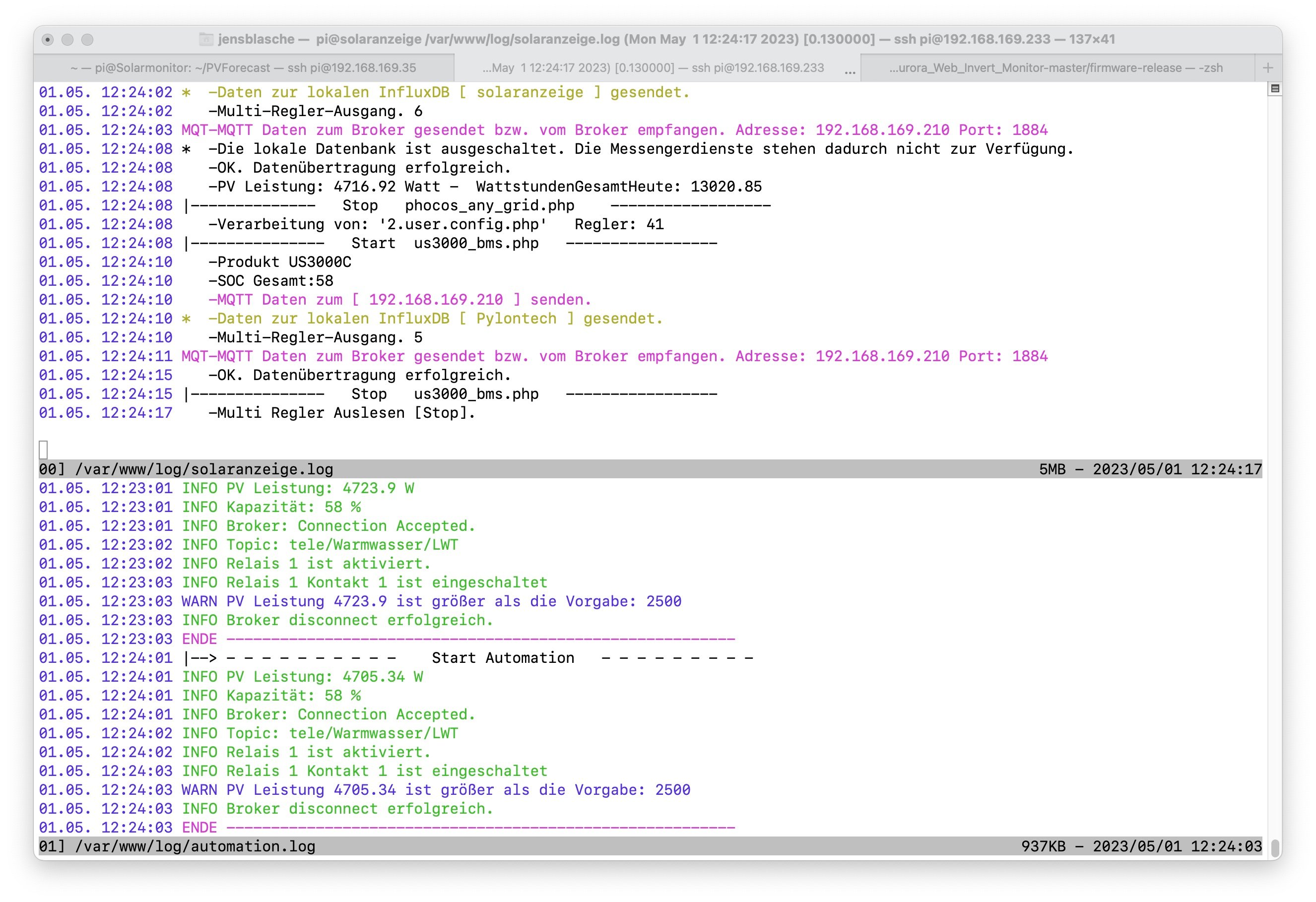 bringt Euch nun diese nette gestapelte Anzeige von "solaranzeige.log" und "automation.log"