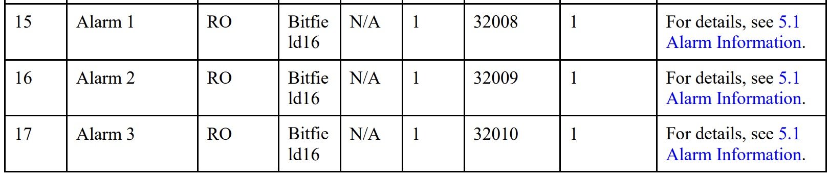 die Huawei WR stellen über die Modbus Register 32008, 32009 und 32010 Alarmmeldungen zu verschiedenen Betriebszuständen bereit.