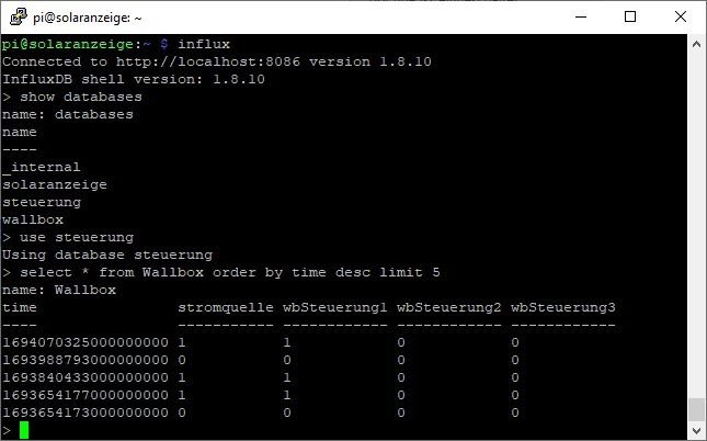 In der Datenbank "Steuerung" gibt es kein Feld was "Stromquelle" heißt.Andy_Capp hat geschrieben: ↑Do 7. Sep 2023, 09:31Ich habe das gleiche Phänomen beobachtet (mit Kombination SolarEdge WR und go-e Wallbox). Die Steuerung funktioniert bestens und behält auch das am Vortag eingestellten Ladeprogramm. Nur das Feld 'Stromquelle' von der Datenquelle 'Steuerung' wird an Mitternacht auf NULL gesetzt, was zur Verwirrung führt. In den LOG Dateien habe ich nichts dazu gefunden.