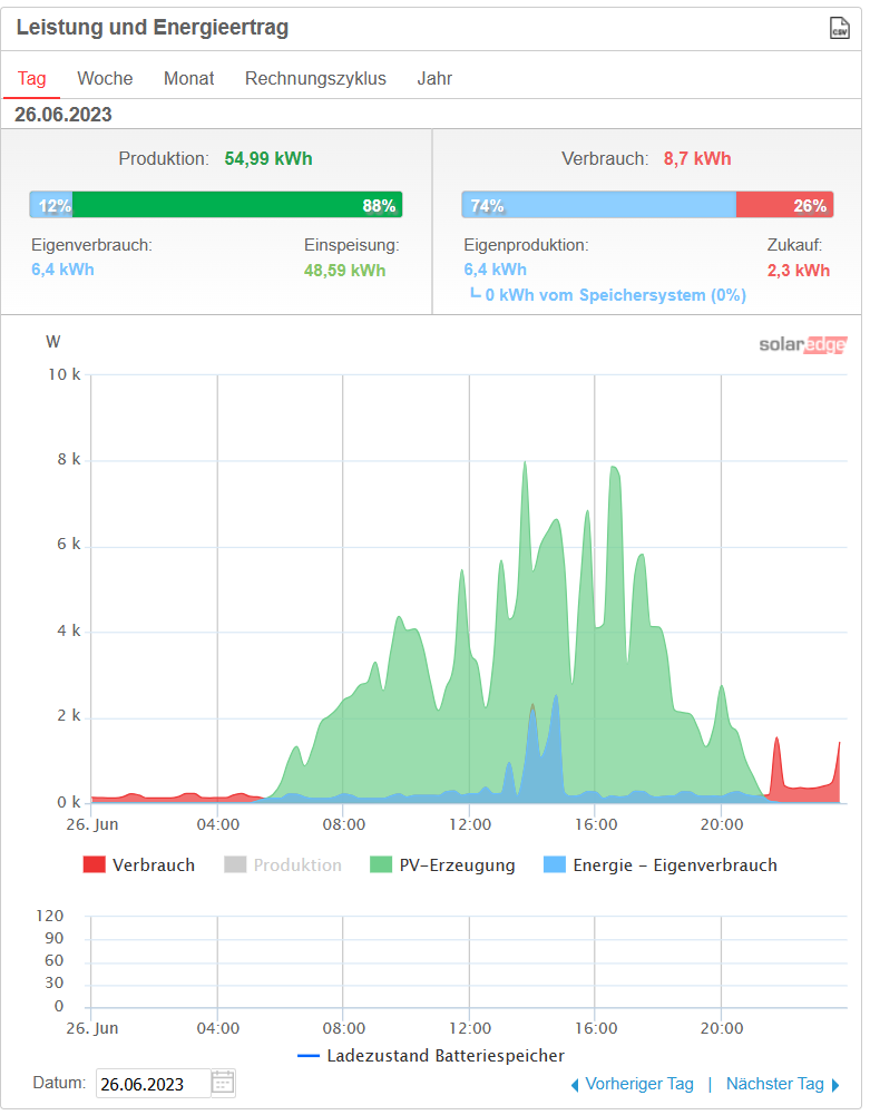Das 1. Chart ist vom 26.6.2023 (also vor dem Einbau des Akkus)