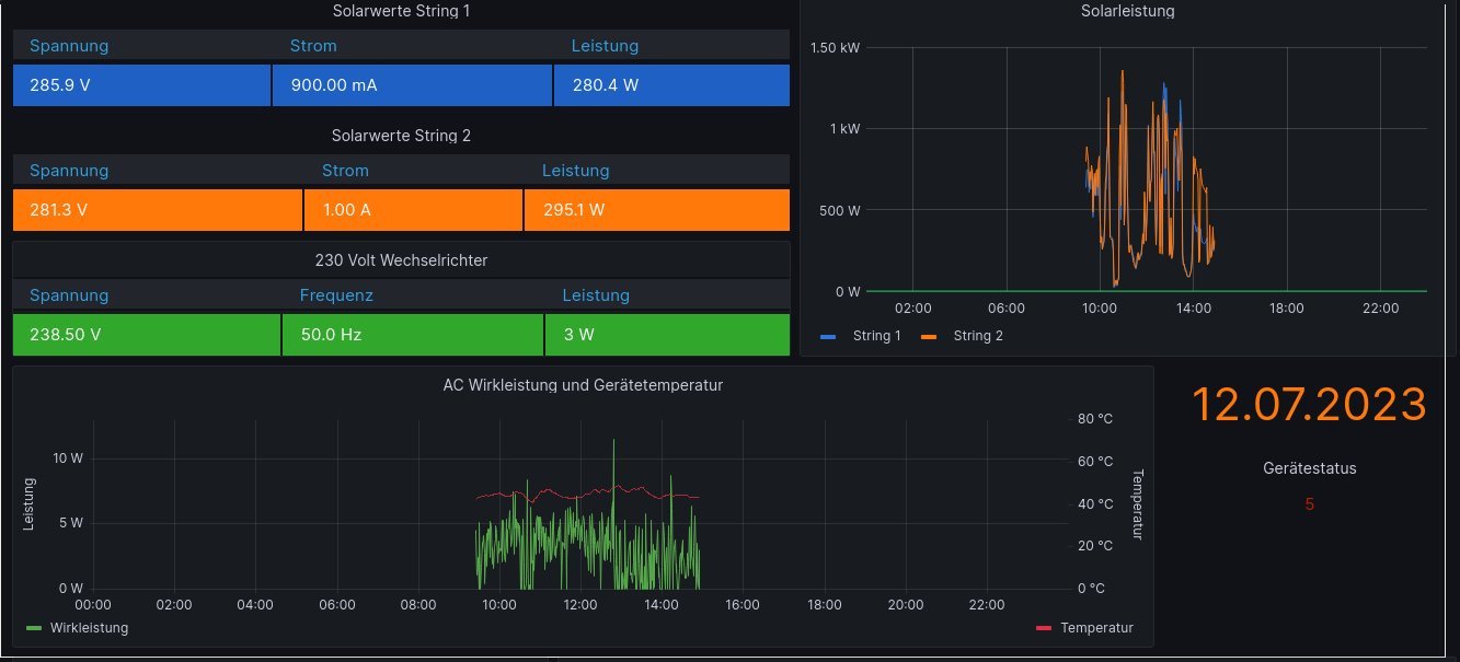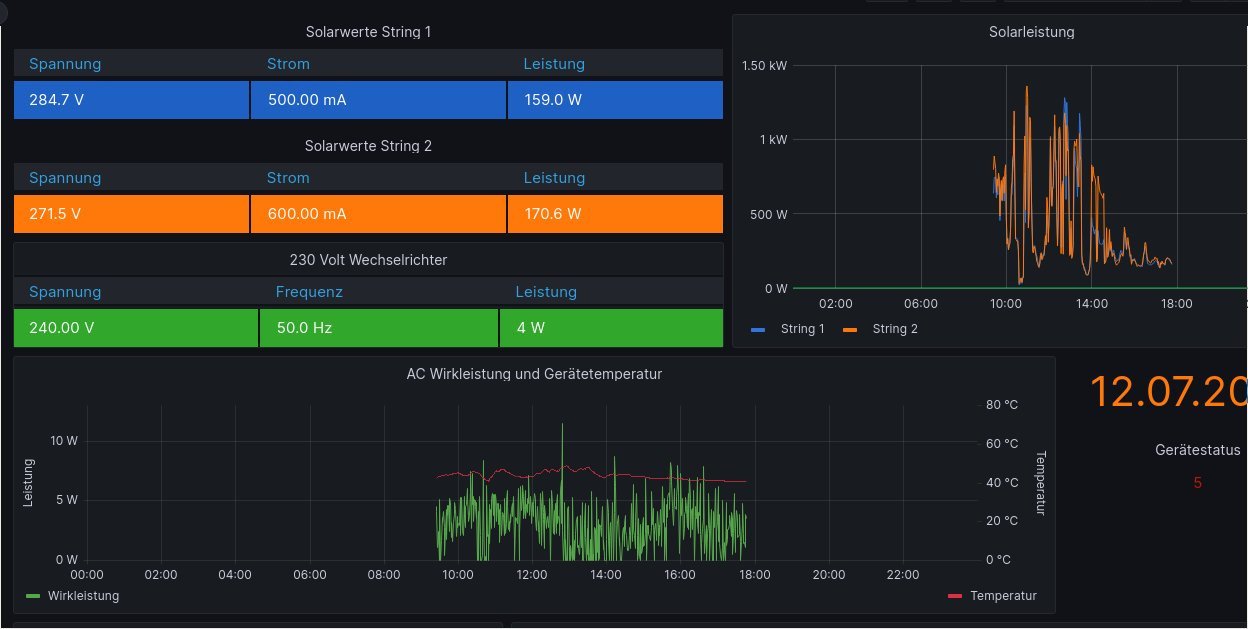 gefühlt seit Einbau Smartmeter SDM 230 zeigt mir die Solaranzeige für beide Strings die korrekte Leistung an bei der Wechselrichterleistung aber nur paar Watt, das hat er vorher korrekt angezeigt