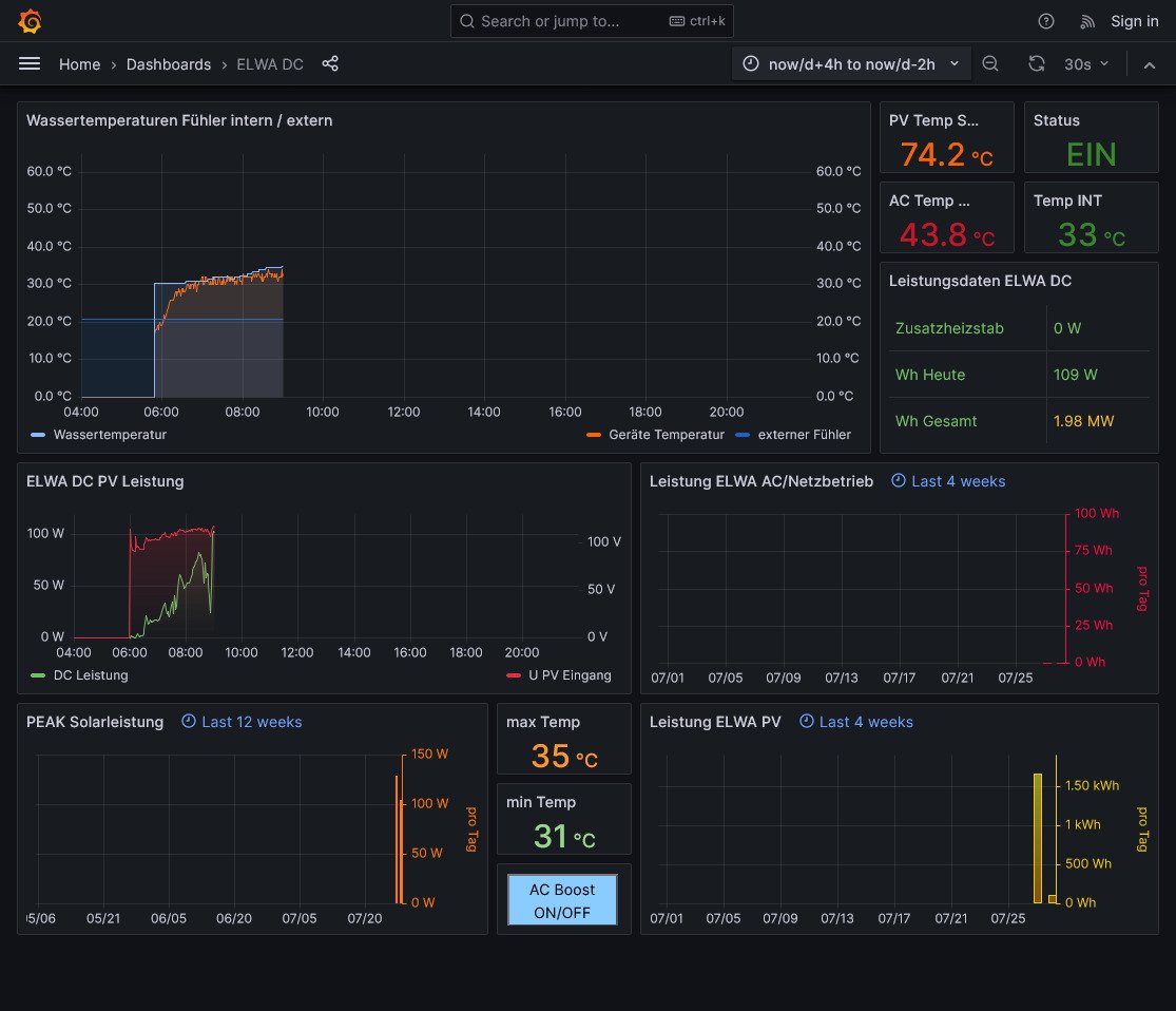 Der ELWA DC ist jetzt implementiert. Bitte ein Update auf die Solaranzeige machen. Regler = 95