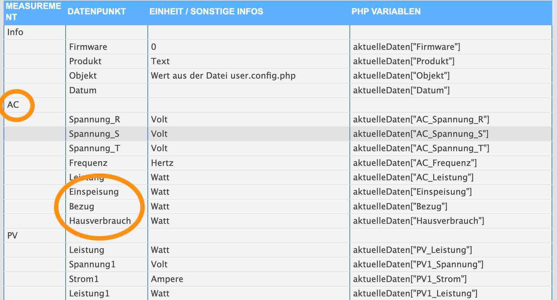 Adäquat dazu jeweils einen Block für die anderen Werte anlegen ("solaranzeige,AC,Bezug" , "solaranzeige,AC,Hausverbrauch")!