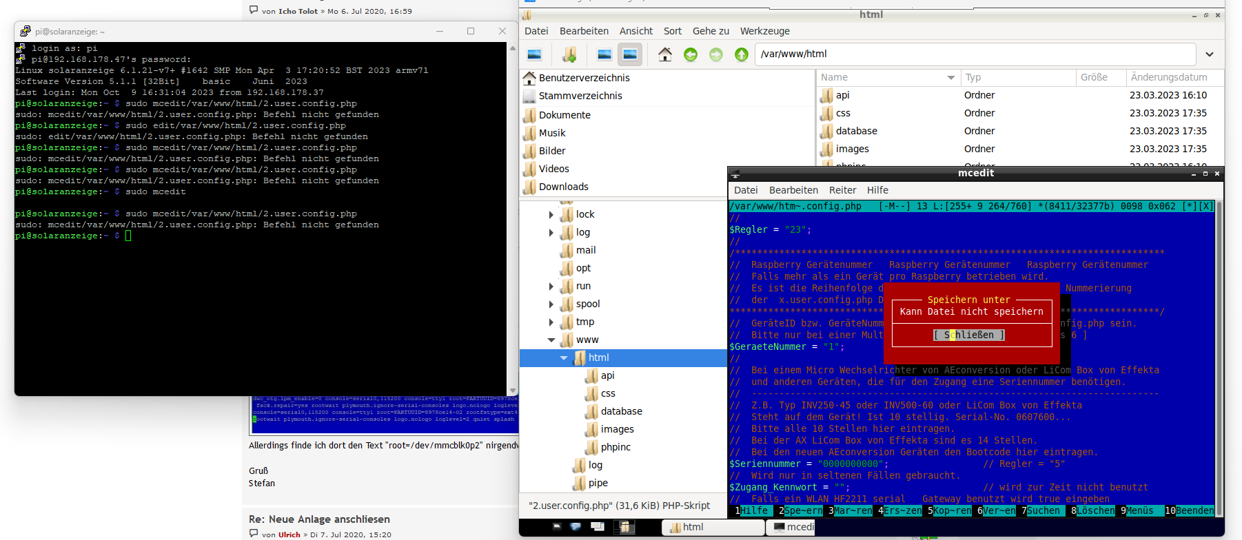 ich kann den Befehl/Phad -->sudo mcedit /var/www/html/2.user.config.php nicht öffnen und über den Dektop Konsole die Editierungen nicht speichern.