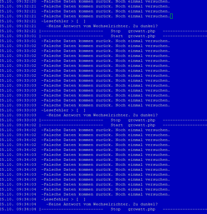 Moin ich habe mir einen rasbi fertig gemacht für meine growatt 5000es und ich bekomme keine daten am Anfang habe ich die Installation falsch ausgefüllt aber nun ist eig alles richtig bekomme aber trotzdem keine daten im solar anzeige log steht folgendes (habe ein screen angehängt)
