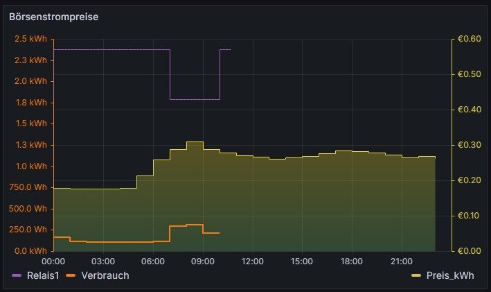 Die Konfiguration ist in diesem Fall so eingegeben, dass das Relais jeden Tag an den 3 teuersten Stunden ausgeschaltet wird.