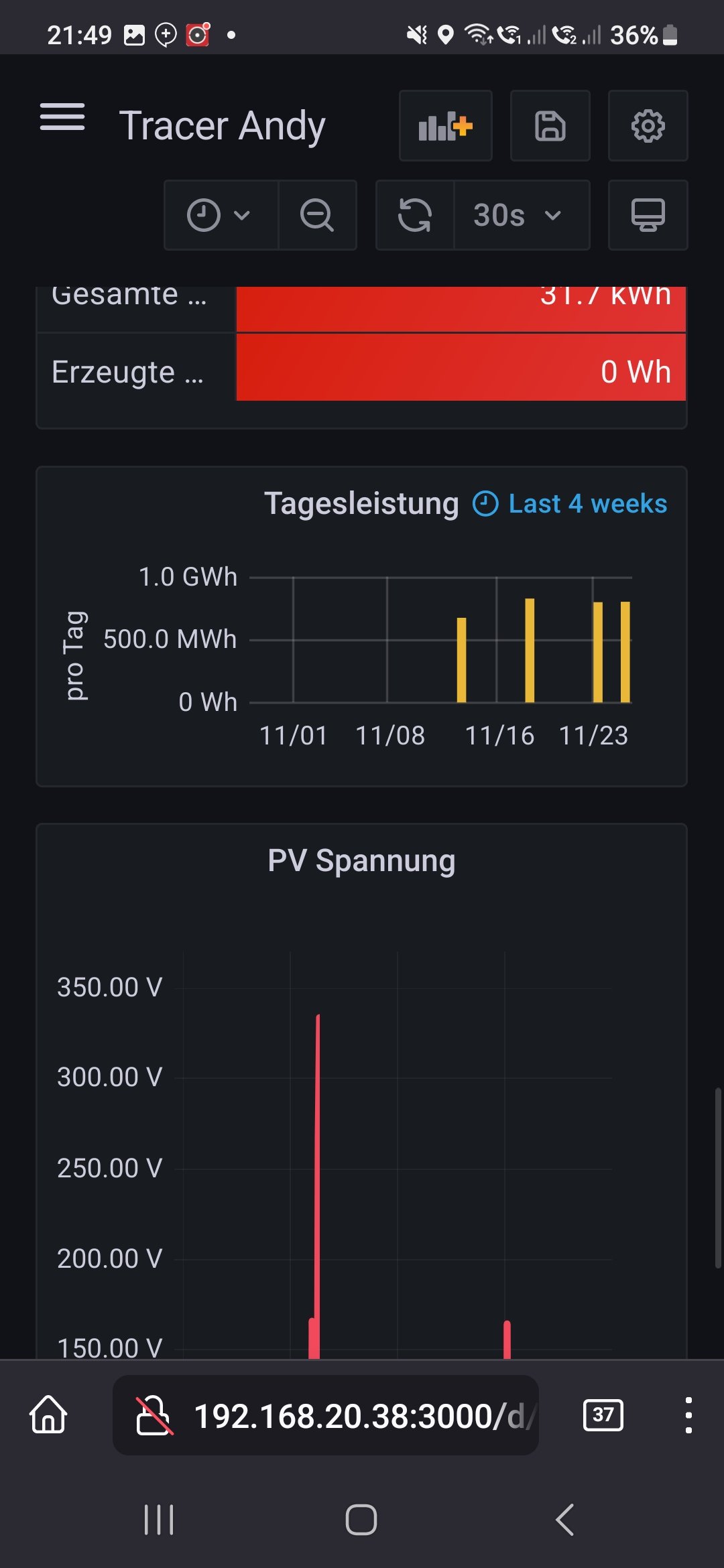 Wie man sieht liest er auch schon schon 655V von der solarspannung aus