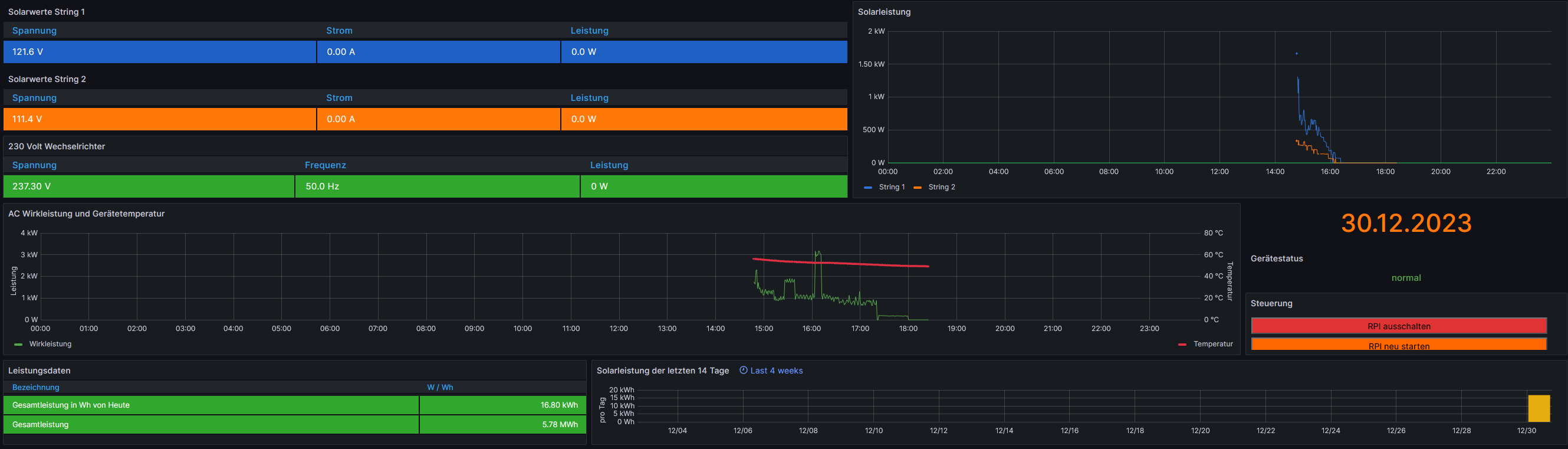 ich habe nun erfolgreich Solaranzeige auf einem Raspi installiert und kann auch zumindest die Standard-Daten vom WR via Modbus abgreifen.