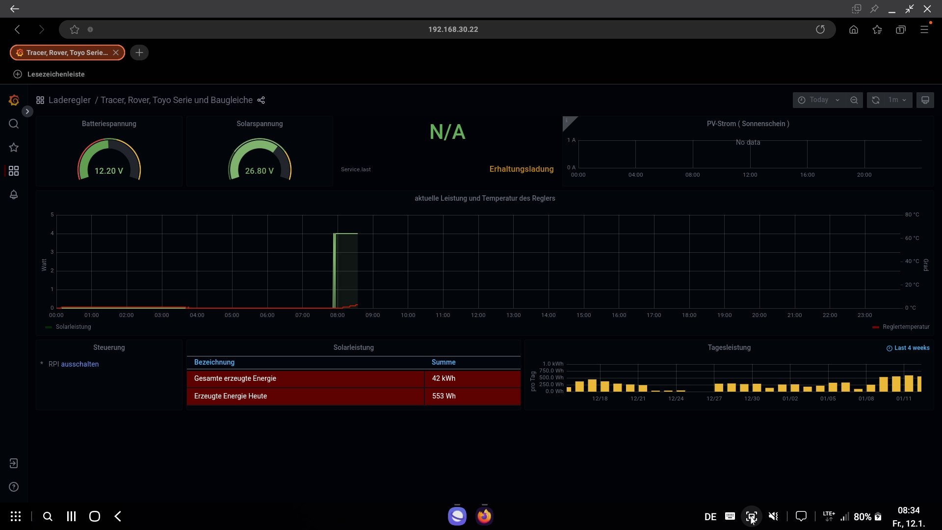 Ich habe in der vergangenen Veröffentlichten Version der Solaranzeige, das Dashboard für Tracer benutzt.