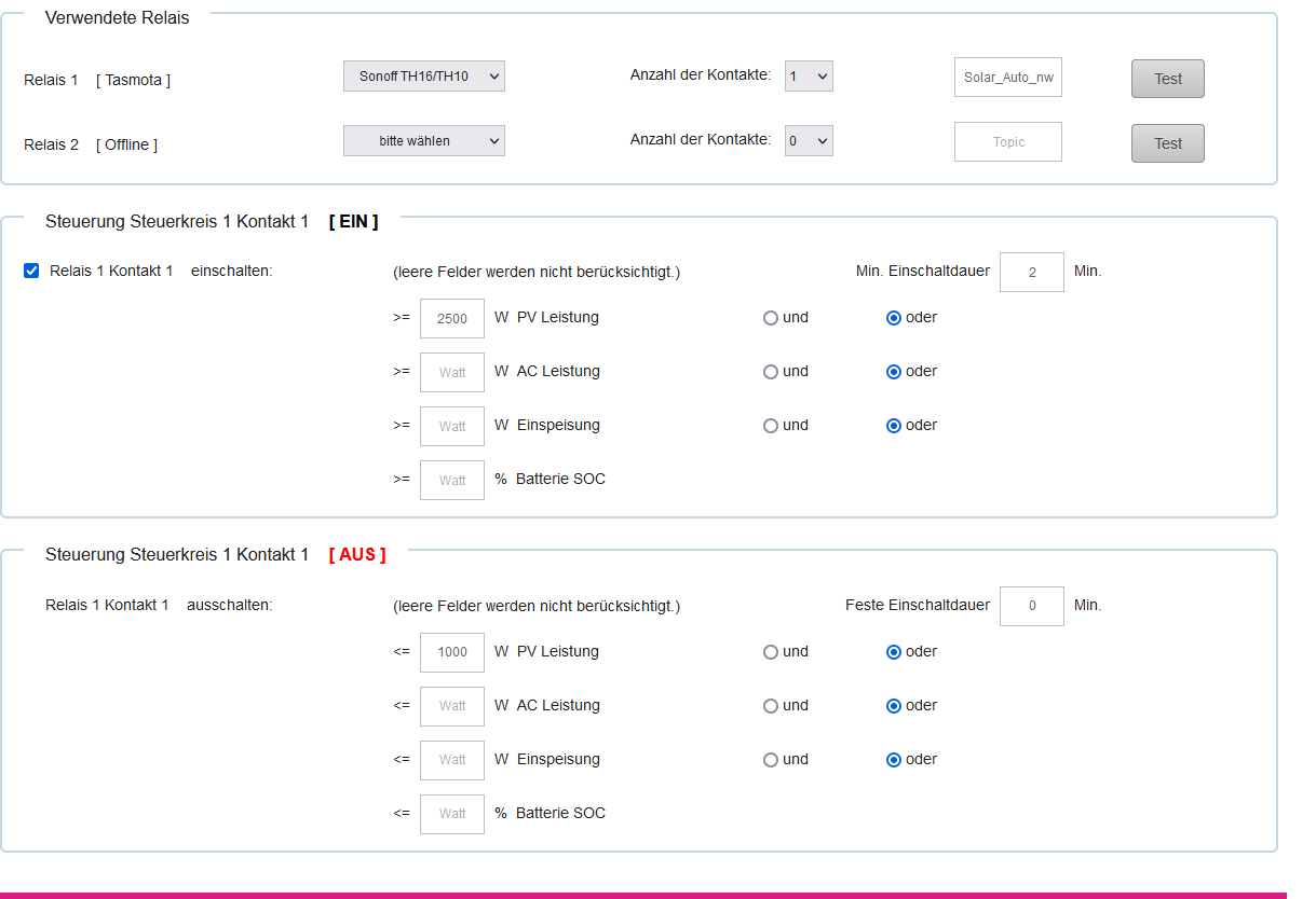 wird ja "PV-Leistung" und "Einspeisung" mit "und" geprüft und "Einspeisung" mit "SOC" mit "oder", da rein sequenziell geprüft wird im Code. Wenn also "PV Leistung" oder "Einspeisung" die Prüfbedingung nicht erfüllt, ist das zwar "false", aber wenn "SOC" Prüfung OK ist, ist meine Erwartungshaltung, dass die Prüfung insgesamt erfüllt ist und das Relais geschaltet wird, nach der Tabelle hier:
