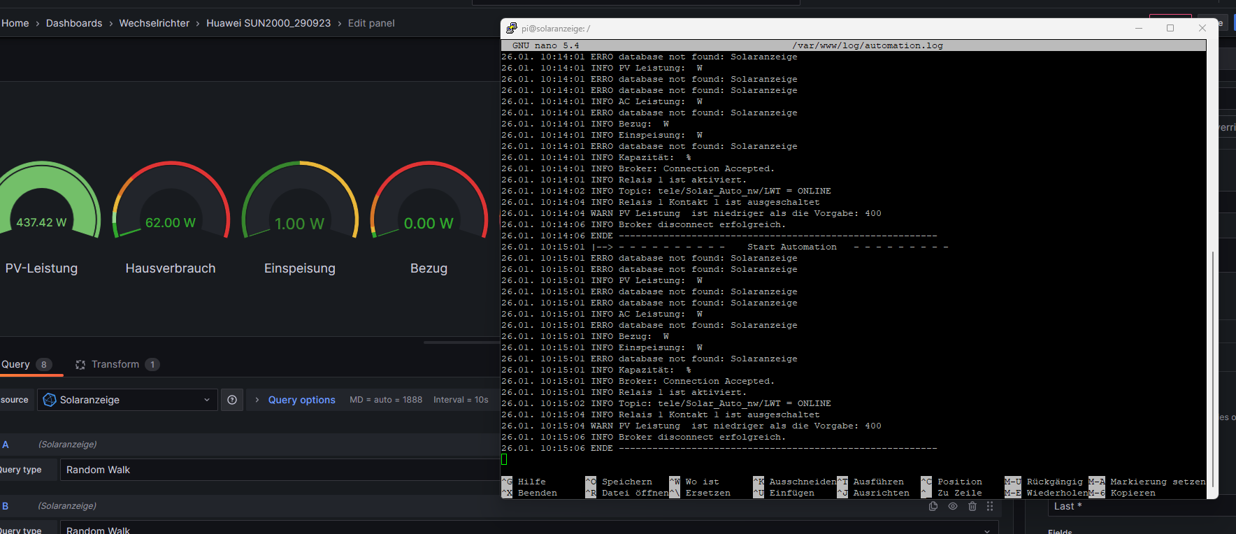 Also, was kann man tun, dass die Datenbank " Solaranzeige" gefunden wird?