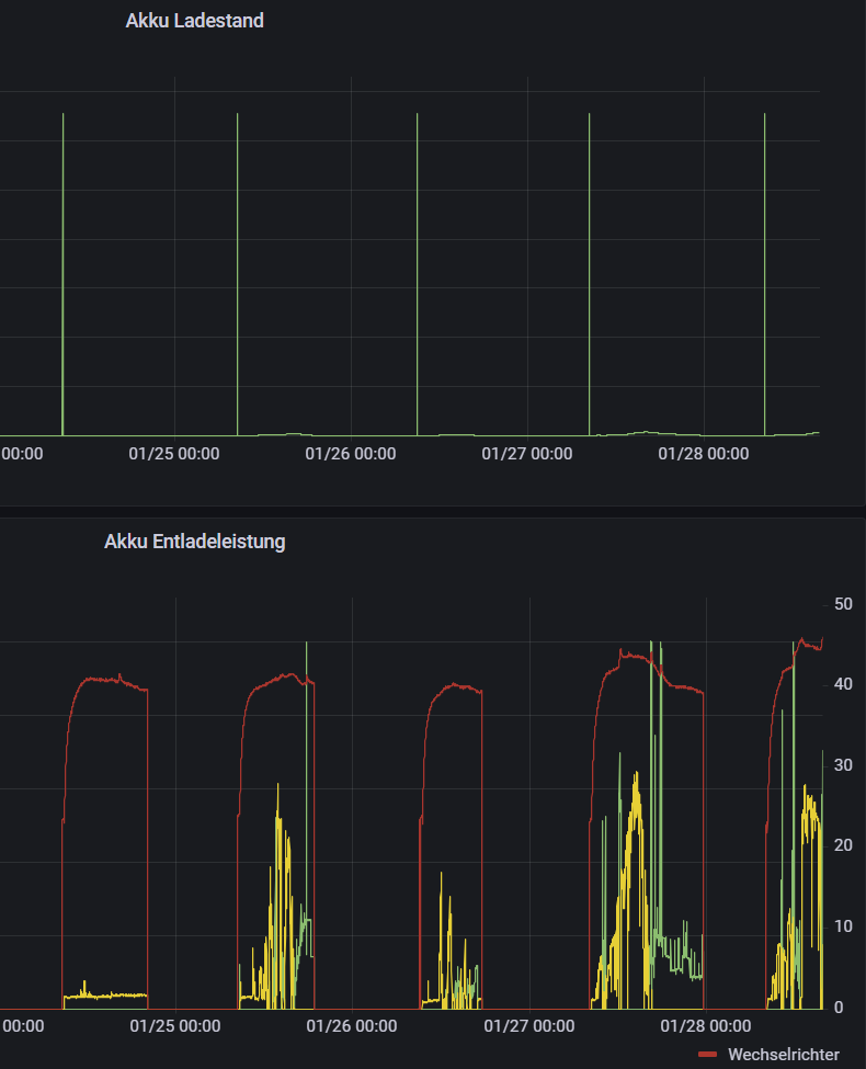 Dem kann ich nur beipflichten. Seit den Update glasklare Diagramme. Danke an das Team (@Ulrich)Modellbauhütte hat geschrieben: ↑Di 23. Jan 2024, 21:52Also seit dem Update gestern nicht eine Lücke oder falschen Wert. Vorher hatte ich ja neben 0% SOC auch immer mal wieder völlig absurde Werte bei Einspeisung, Ertrag etc.