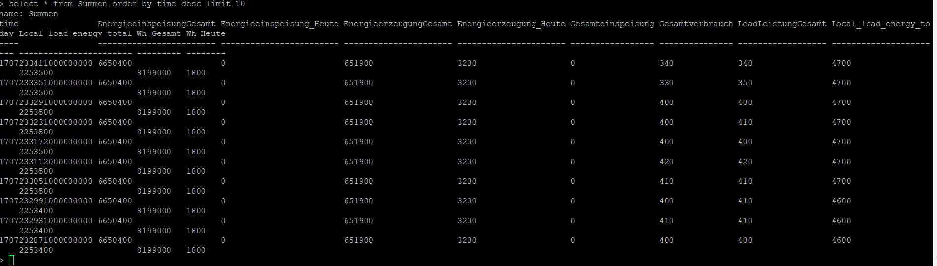 Und ich hätte direkt noch eine kurze Frage zu der Tabelle "Summen" in der Datenbank, sind das Werte die auch direkt vom WR kommen, oder ist dafür irgendwo eine Formel hinterlegt und der Raspi berechnet diese Werte? Es erschließt sich mir nämlich nicht ganz wie sich die Werte "Wh_Heute" und "Energieerzeugung_Heute" zusammensetzen, die Werte passen überhaupt nicht in meinen Verbrauch und lassen sich auch so in der Growatt nirgends finden.