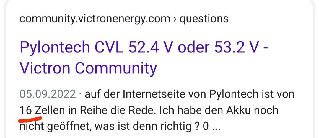 aber die Pylons sind definitiv 16S...entweder war ne Fehleinstellung dran schuld oder es liegt echt nen Defekt vor, aber das kann ich dir aus der Ferne nicht beantworten. Ich kenn viele, die fahren Victron und Pylons seit Jahren, ohne Probleme.....so schnell altern die auch nicht