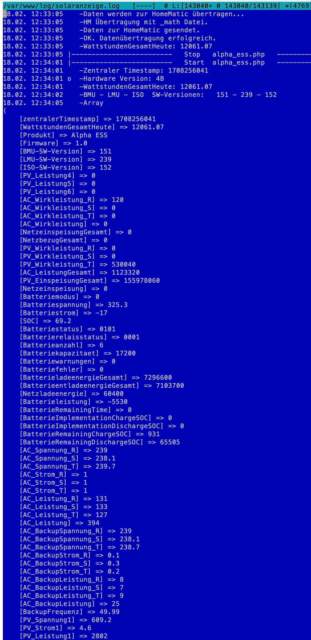Welche BMS Version hat den dein Wechselrichter? Steht im Solarlog und in der Alphaess App. davon abhängig ist der Zweig, der in der Alphaess.php aufgerufen wird