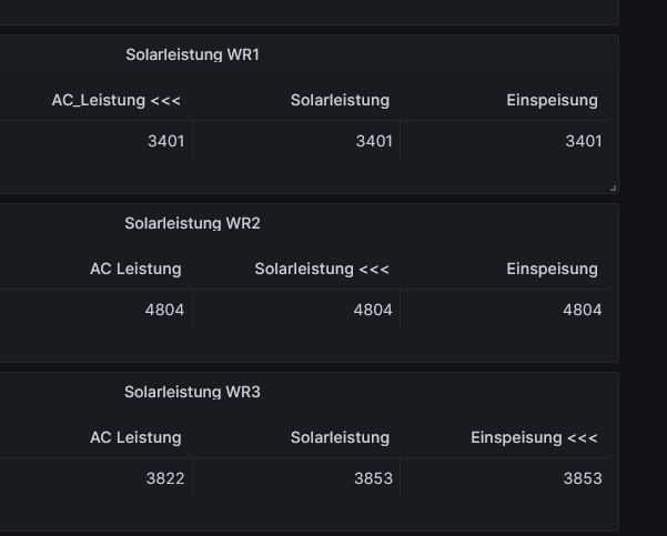 Also frage ich nun bei WR1 die AC_Leistung ab, bei WR2 die Solarleistung und bei WR3 die Einspeisung und lasse mir diese in der jeweilig identischen Variable auf der CCU3 anzeigen.
