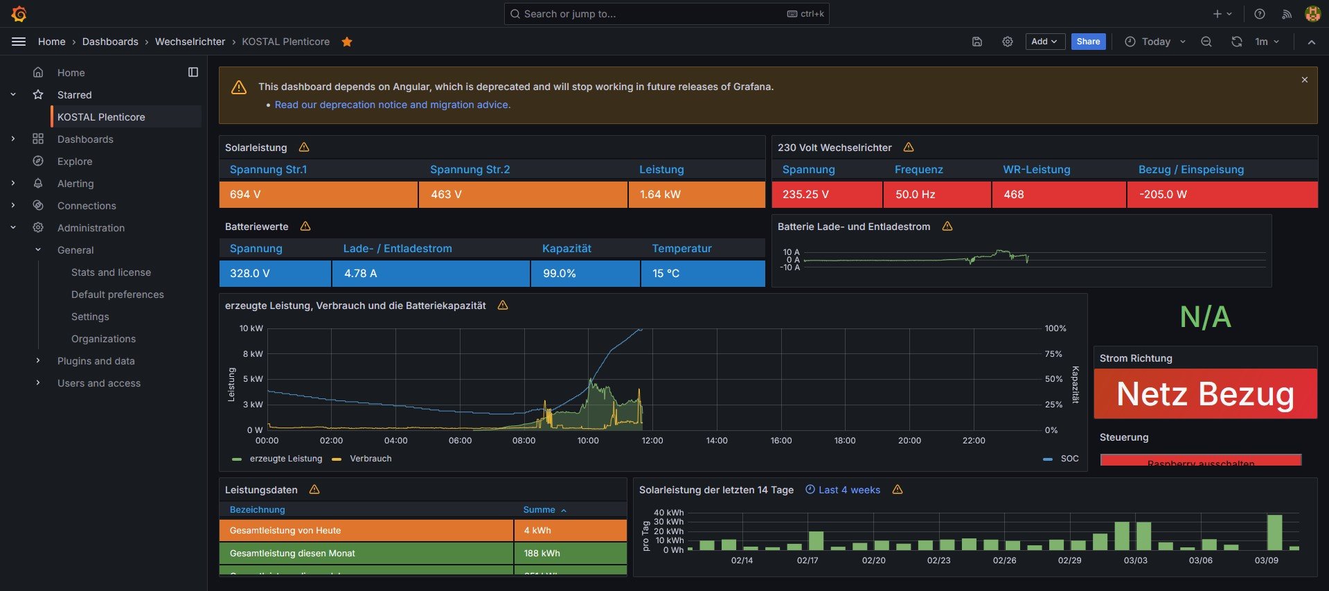 bekomme beim Dashboard folgende Fehlermeldung: Dieses Dashboard hängt von Angular ab, das veraltet ist und in zukünftigen Versionen von Grafana nicht mehr funktionieren wird. nach dem letzten Update. Was kann ich machen damit alles wieder in Ordnung ist?