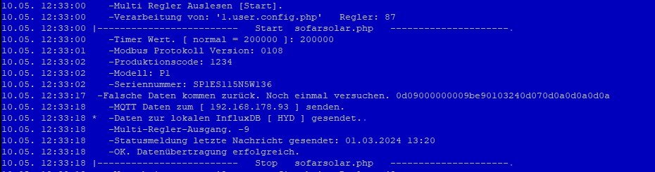 Die Datenübertragung ist nicht einwandfrei. Die Software muss mehrfach die Daten versuchen abzuholen. Entweder hat der Adapter eine Macke oder das Netzteil vom Raspberry ist zu schwach oder der Wechselrichter ist noch mit anderen Geräten gekoppelt und hat keine Zeit für die Antwort oder es hängen mehr als ein Gerät an einer RS485 Schnittstelle.