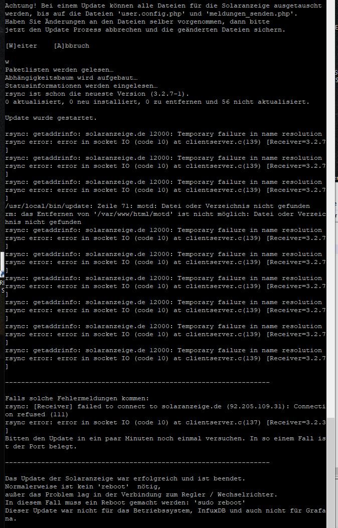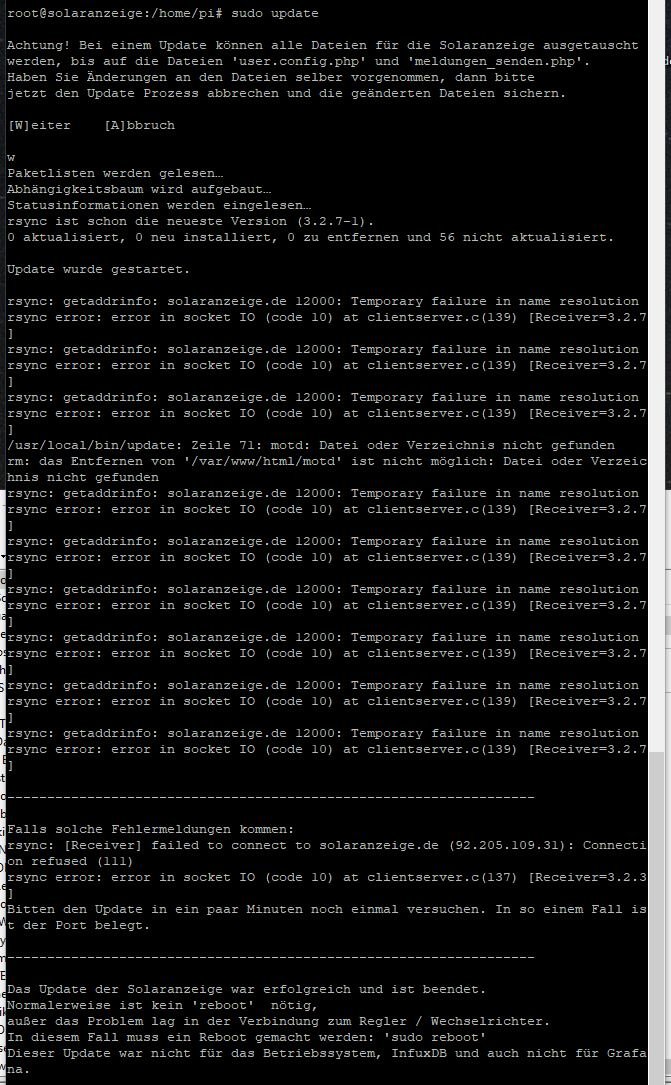 Leider lässt sich die Solaranzeige nicht Updaten. Diese Meldung kommt immer beim Ausführen der Update funktion (diese Woche schon 2x versucht)