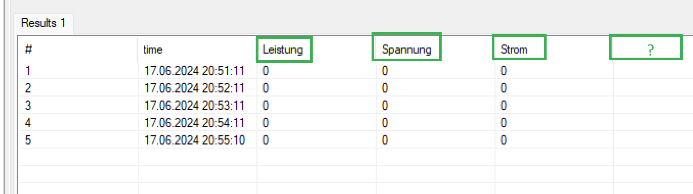 Das Problem ist, dass dein Gerät auf den Befehl "QPIGS2" keine Antwort gibt. Mit diesem Befehl wird der 2. PV Strang ausgelesen. Ich gehe davon aus, dass es Firmware abhängig ist. Eventuell hast du noch eine alten Firmwarestand.