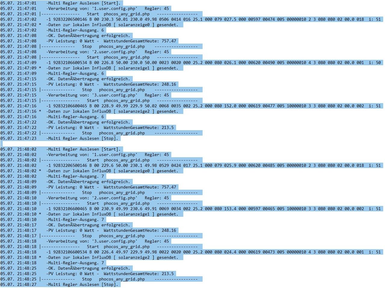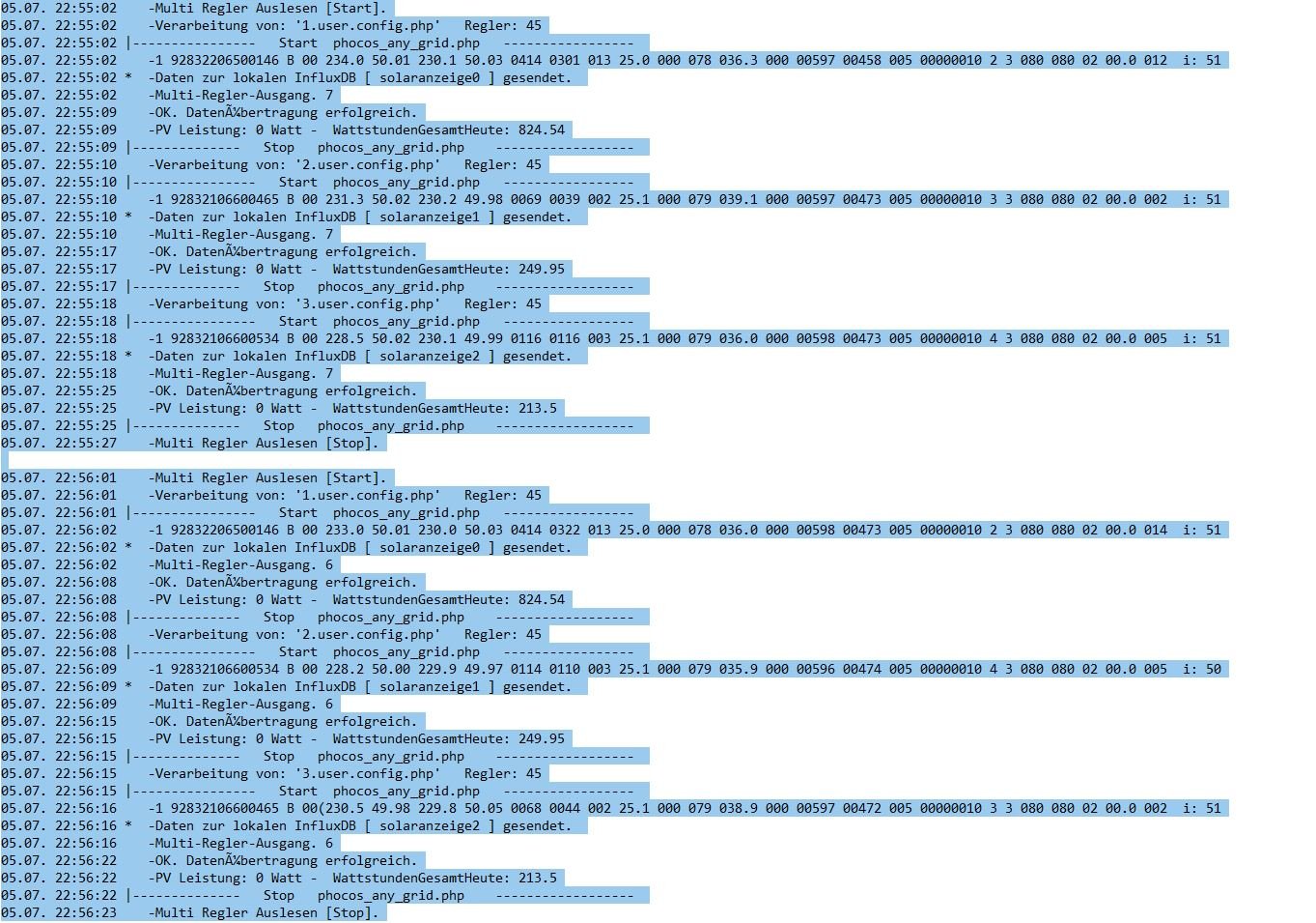 Das heist dass die zuordnung von den wechselrichtern zu den influxDB jetzt immer stimmt ,was ich nicht verstehe ist das die im log datei aber die reihenfolge nach wie vor immer wechseln aber mit zugehörigen DB und Seriennummer .