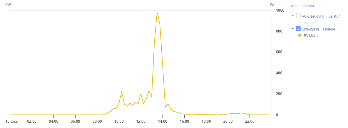 Das Problem haben alle die einen Speicher am WR von SE haben. Leider berechnet auch Ulrich die Kilowattstunden aus der AC-Leistung. Somit hast du auch Produktion in der Nacht. Was aber der Art und Weise geschuldet ist, wie Ulrich die erzeugten Kilowattstunden berechnet. Das ist im Monitoring von SE natürlich nicht zu sehen, weil eigentlich nicht da.