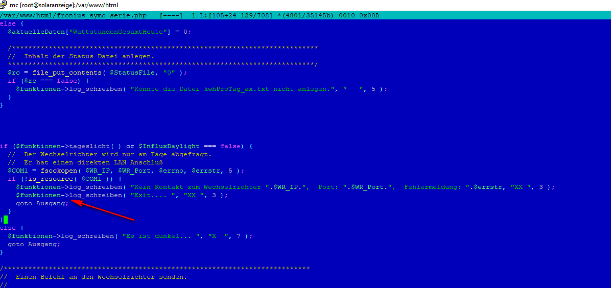 Nun würde ich eigentlich am liebsten die aufgerufene fronius_symo_Serie.php so abwandeln das bei fehlenden Kontakt zum Wechselrichter einfach in meine dazugehörige Influx DB mit dem Namen "fronius2" in die Tabelle "PV" beim Feld "Leistung" eine Null geschrieben wird.