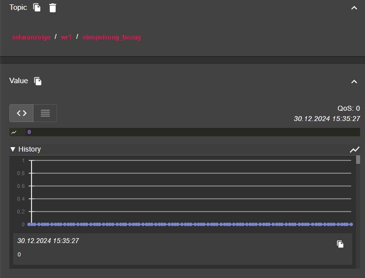 Ich habe keine Batterie und somit werden alle hier aufgeführten Werte gleich 0 gesetzt. Das kann ich per MQTT Explorer auch nachvollziehen und passt zu den an Influx gesendeten Daten: