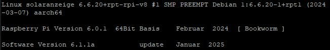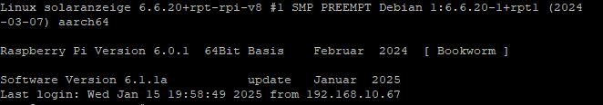 Update der Solaranzeige immer nur mit "sudo update" durchführen