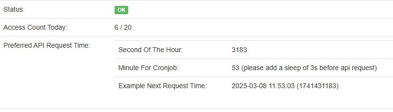seit dem 02.04.25 bekomme ich keine Daten von Solarprognose. Auf der solarprognose.de ist auch mein "Access Count Today: 0 / 20", dies um 20:00