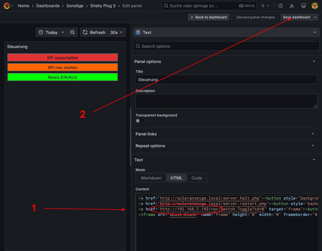 Wenn man den Shelly Plus Plug S aus Grafana heraus schalten möchte, dann muss man so vorgehen: