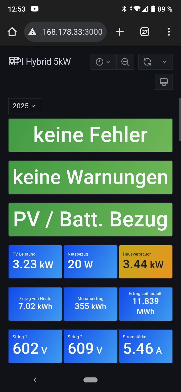 Solaranzeige, Grafana und InfluxDb ist alles auf dem RPI4.