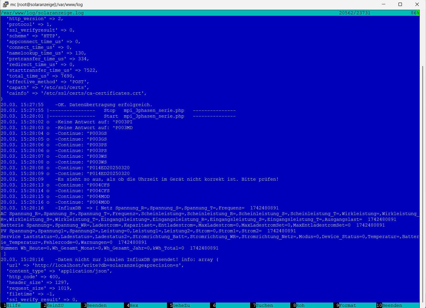 Die Fehlermeldung besagt, dass der Wechselrichter nicht antwortet. Das kann natürlich alles sein.