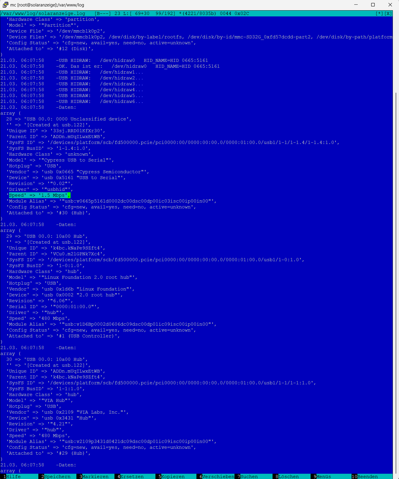 Was mir auffällt ist, das jetzt der $USBRegler kein ttyUSB0 mehr ist, sondern der Hidraw ?!Ich hab leider nicht so viel Ahnung wie das zusammenhängt. Aber irgendwas scheint SA ja zu finden, oder?