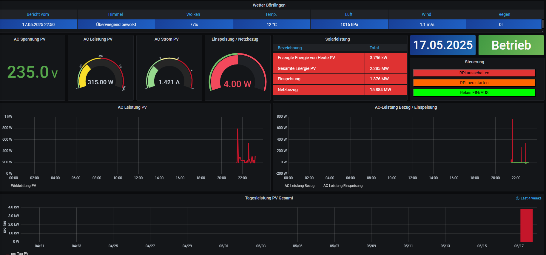 Seit ein paar Tagen habe ich das Problem das bei einem Neustart des Raspberry die Verbrauchsdaten AC Leistung / AC Leistung / Bezug und Tagesleistung nicht mehr sichtbar sind.