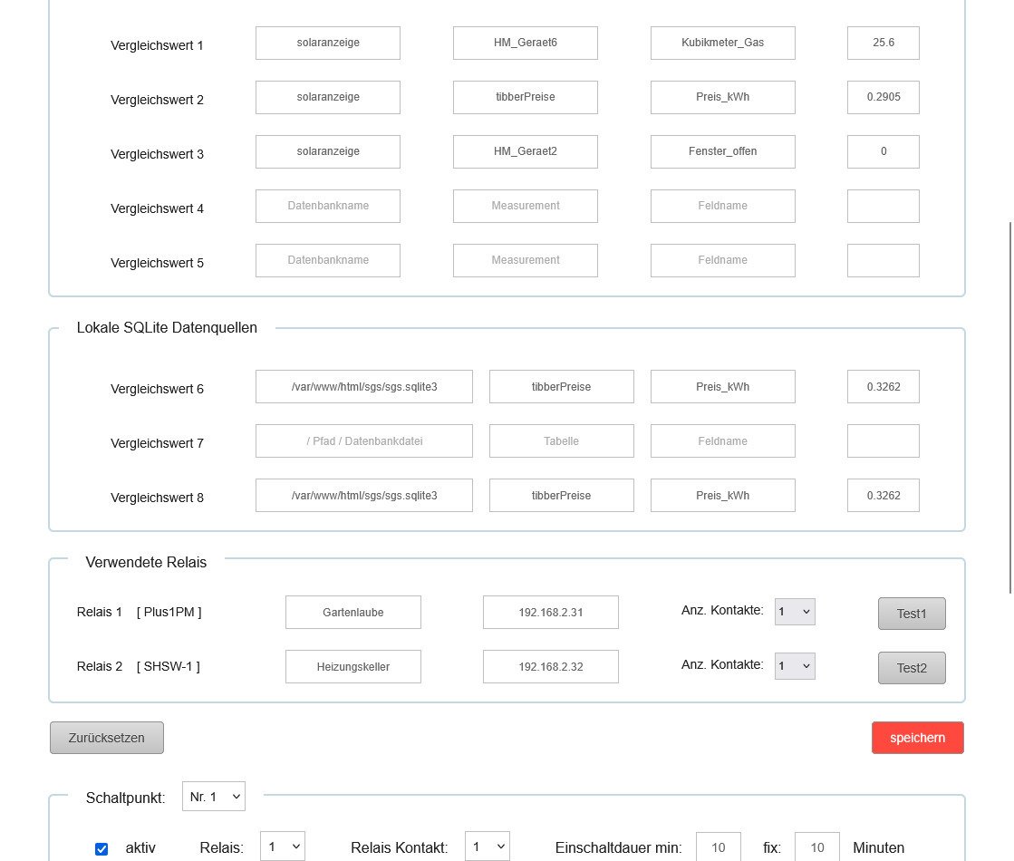 Ich glaub wenn das mal fix läuft werden bei mir 5 Relais nicht reichen, aber abwarten erst mal klein Anfangen, das mit den Datenbanken und Werten auslesen funktioniert sehr gut, ist schnell gemacht , und die Logik muss man sich halt selbst zusammen bauen. funktioniert schonmal