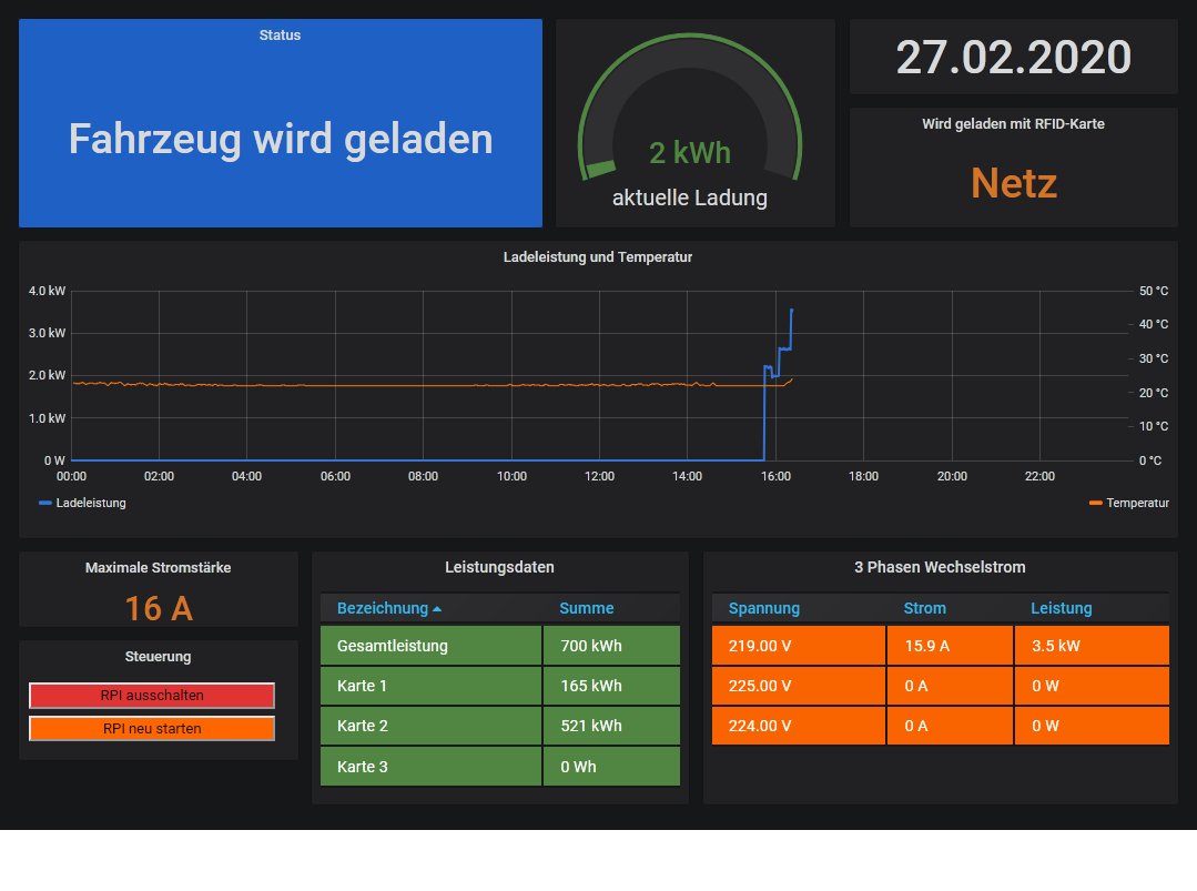aktuell eingestellter Stromwert, Stationsstatus, Temperatur..