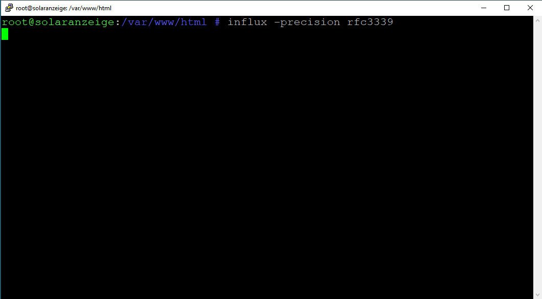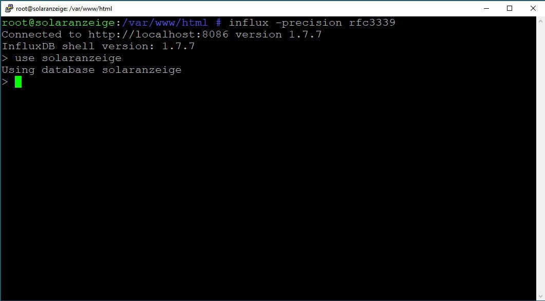 Für die Nutzung in der Solaranzeige, genügt es meistens, wenn man sich innerhalb der Konsole des RPi mit dem Befehl influx das Programm startet