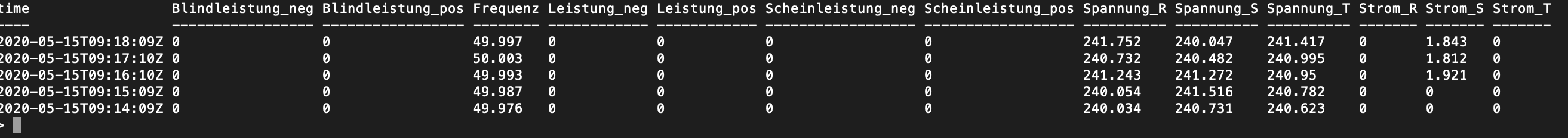 Hallo,Jack Package hat geschrieben: ↑Mo 11. Mai 2020, 23:55Mir ist aufgefallen, dass „Leistung_Neg“ bei niedrigen Werten (genaue Schwelle weiß ich nicht, zB 200-300 Watt) keine Daten liefert. Wenn ich zB Nachts etwas Verbrauch habe, wird mir dieser angezeigt, der Netzbezug - also Leistung_neg - ist jedoch null im Grafana bzw. wenn ich in der influxdb schaue werden keine Werte übertragen.