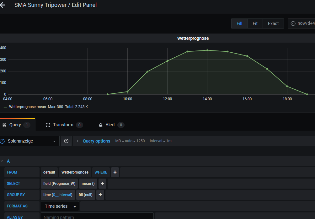 Die Prognosedaten werden von dem Server solarprognose.de geliefert. Eine genaue Beschreibung, wie die Daten eingebunden werden, findet ihr hier.
