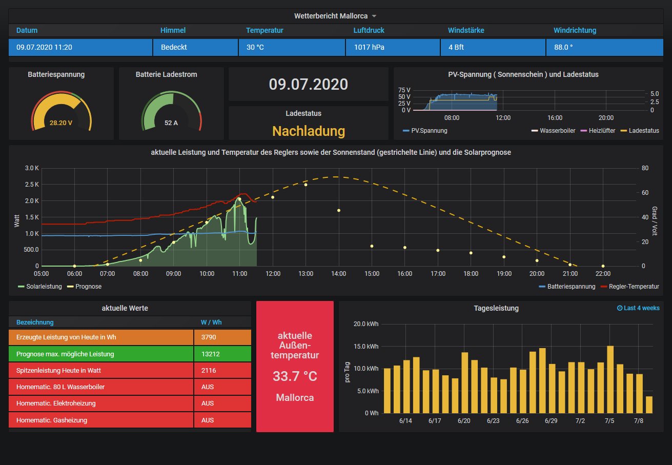 // Die Daten stehen dann in der Influx Datenbank "solaranzeige" unter dem
