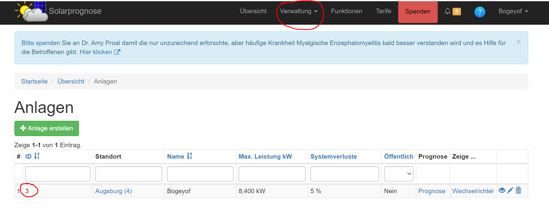$PrognoseID = "0"; // Anlagen ID oder Wechselrichter ID