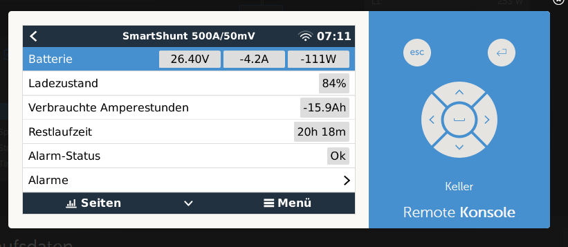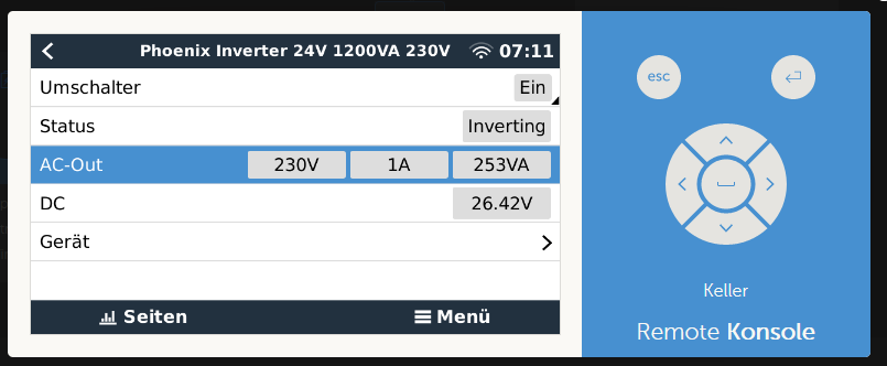 ... denn ich habe genau das gleiche Problem und noch keine Lösung gefunden. Ich betreibe einen 24/1200 Inverter und dieser ist mit einem Venus OS verbunden. Die Angezeigte Leistung AC-Lasten sollte sich mit der Leistung Discharging decken. Hat jemand hierfür eine Lösung?