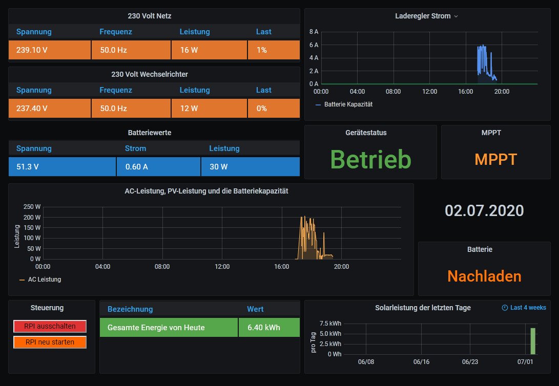 Regler = 42. Es wird ein RS485 zu USB Adapter benötigt. Das Standard Dashboard ist das vom Phocos PH1800